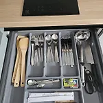 - ❓¿Hay una cocina disponible en este apartamento para uso de los huéspedes?Sí, este apartamento está equipado con una cocina completa y ofrece también un hervidor eléctrico, una nevera y menaje de cocina.